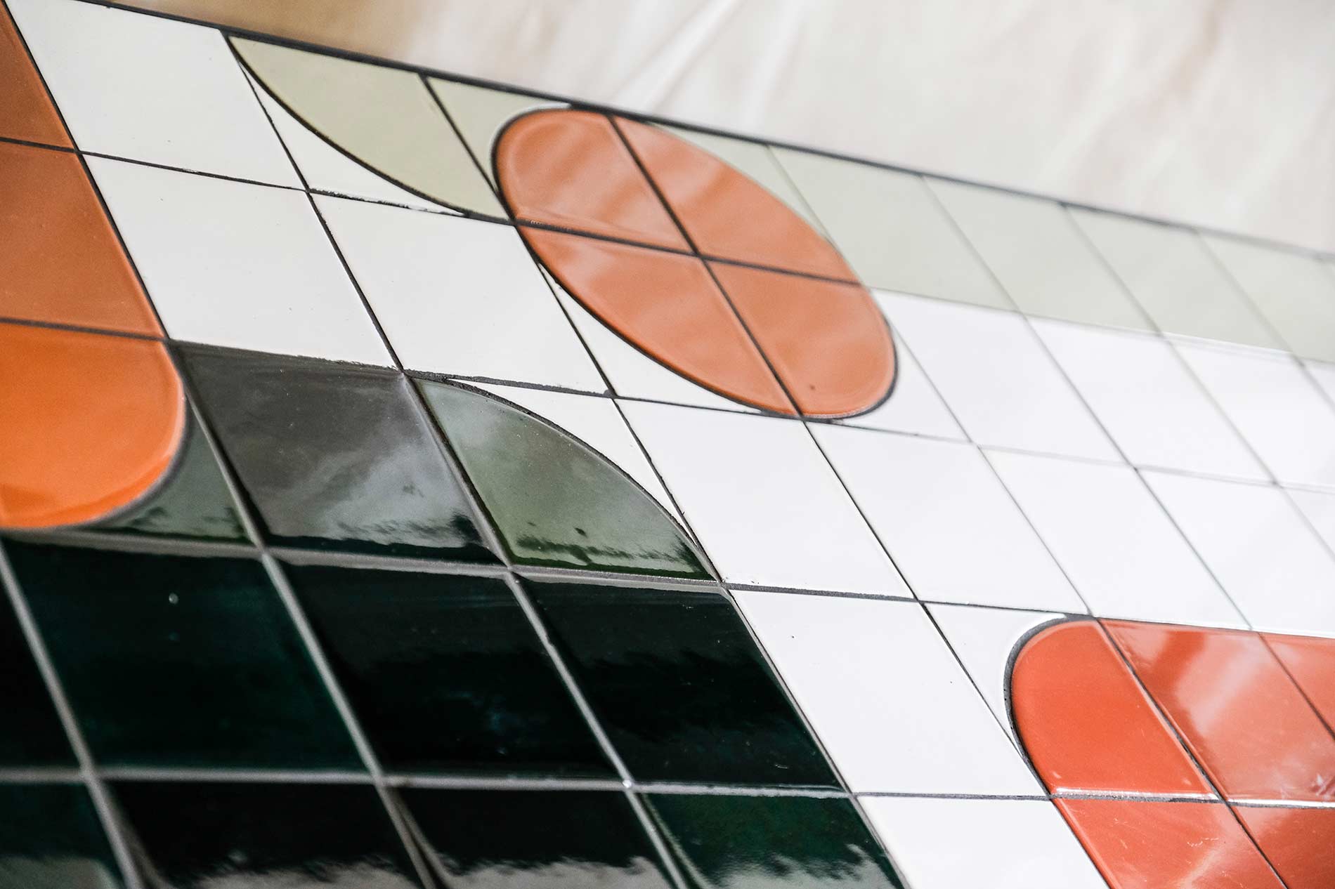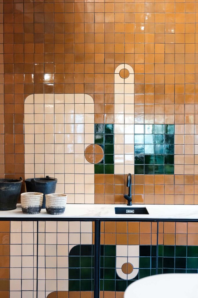 A smooth tile surface where the varied application of our glaze creates a textured surface, creating an energetic and vibrant finish.